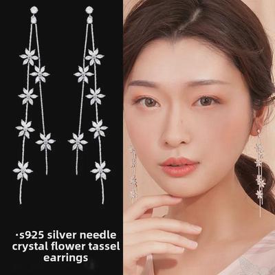 2025 Lys Luksus Sølvnål Diamantblomst Tassel Øredobber - Elegant Europeisk & Amerikansk Stil for Kvinner