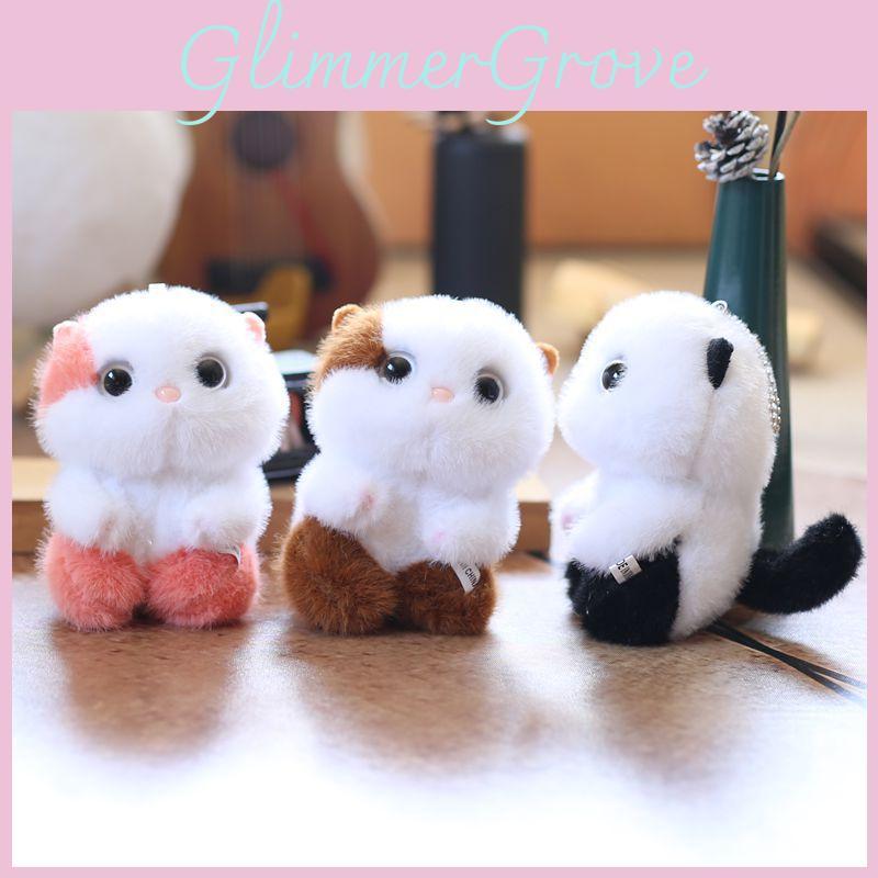 plush cat pendant, animal plush accessory, soft cat plush toy, collectible plush figure, short plush cat, cute cat keychain, decorative plush ornament, cat lover gift