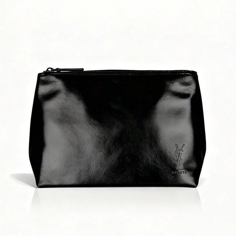 YSL-Women’s Black Rectangular Makeup Bag, Handheld Travel Cosmetic Organizer Pouch, Portable Daily Storage Clutch