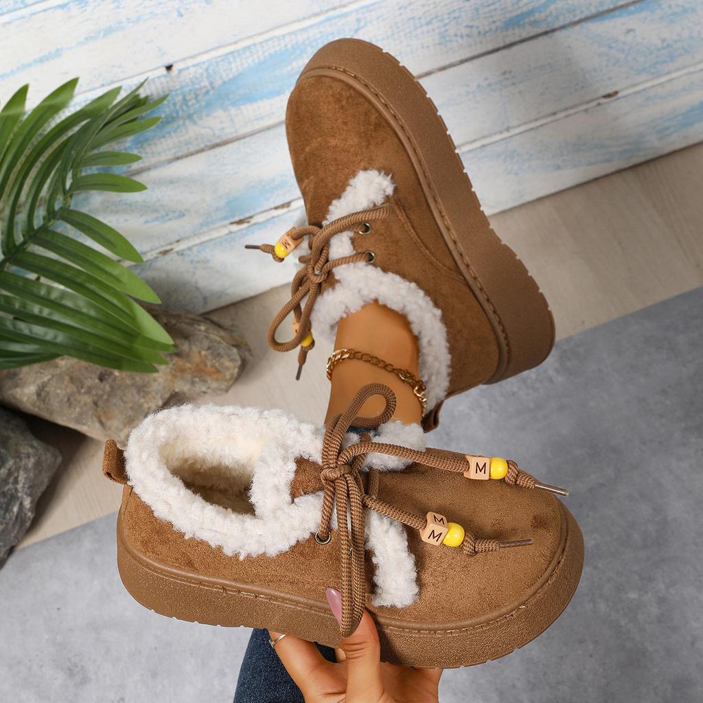 Women's Winter Fashion Round Toe Designer Snow Boots Lace Up Walking Comfortable Lightweight Short Boots