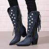 Women Cowboy Boots Mid Calf High Boots With Fringe Wide Calf Riding Cowboy Boots