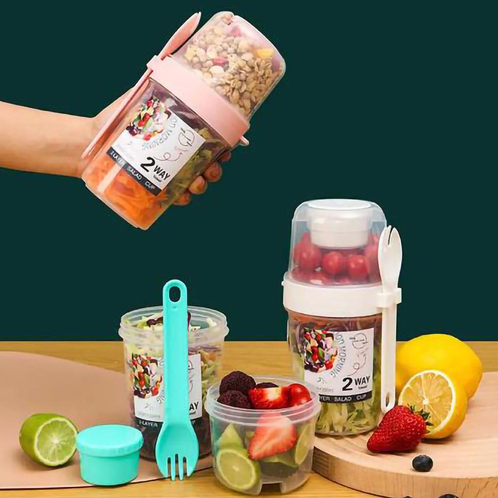 Bærbar salatkopp dobbel havregrynskopp yoghurt nøtter fettredusert grønnsaksfruktboks kopp med lokk skje frokostkopp matboks