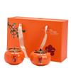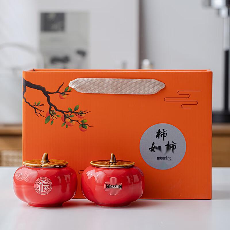 Shangqi Fortune Engraved Red Ceramic Tea Caddy Gift Set