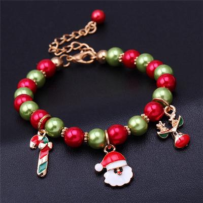 Julenissen Juletre Snømann Strømper Anheng Armbånd Faux Perler Søm Justerbar Xmas Bangle Smykkegave