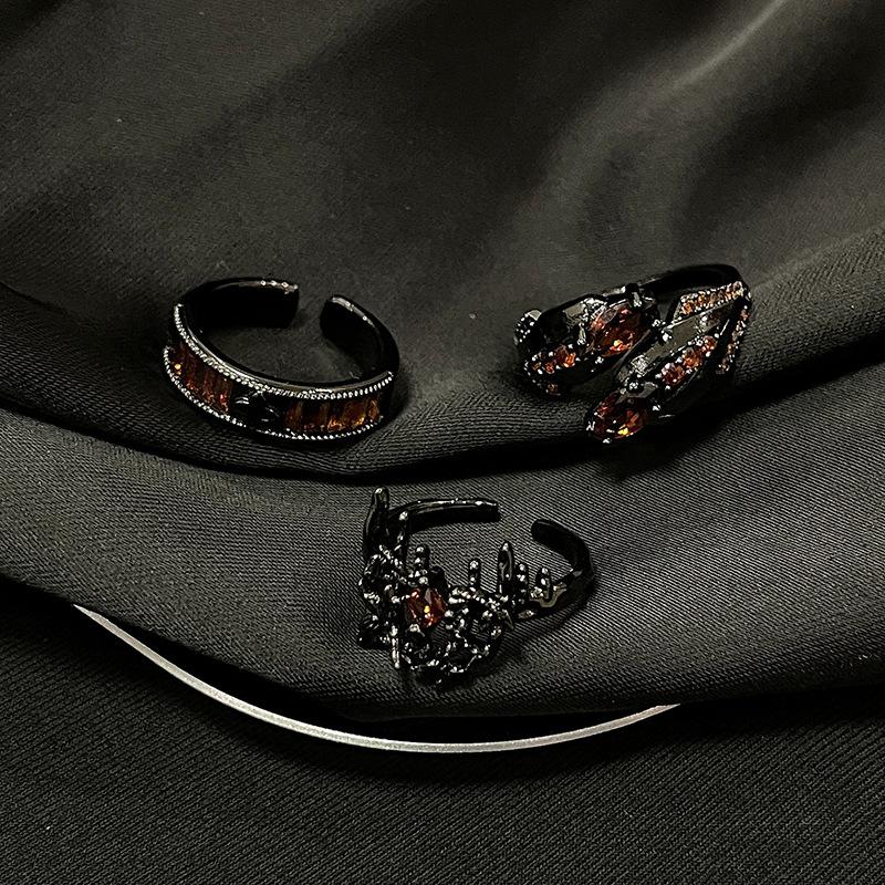 Dark Lava Texture Ruby Ring Women'S Niche Design High Sense Unique Trendy Cool Opening Adjustable Index Finger Ring