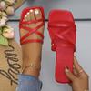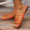 Dames pluss størrelse flate sandaler med enkel rem, ensfarget firkantet tå, avslappede sommerslippers