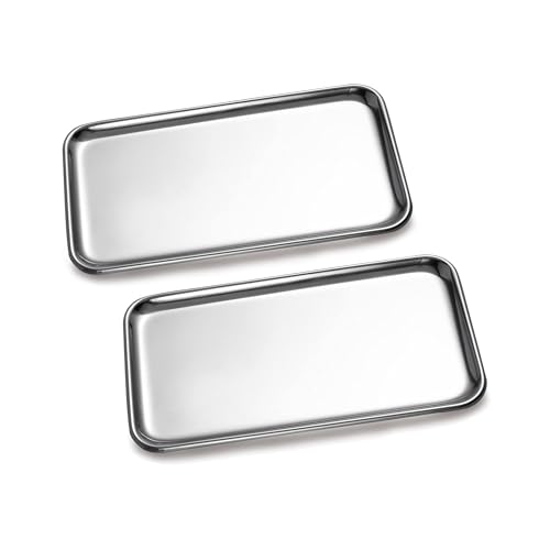 IMEEA Stainless Steel Accessory Tray, Coin Tray, Small Item Tray, Key Tray, Cash Tray, Square, Silver, Set of 2