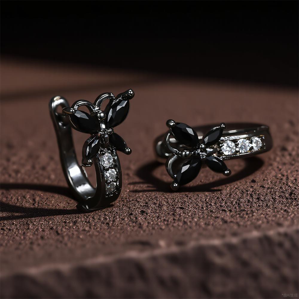 Vintage Black Zircon Cute Small Butterfly Hoop Earrings For Women Black Metal Color Ear Buckle Wedding Jewelry Versatile Gifts