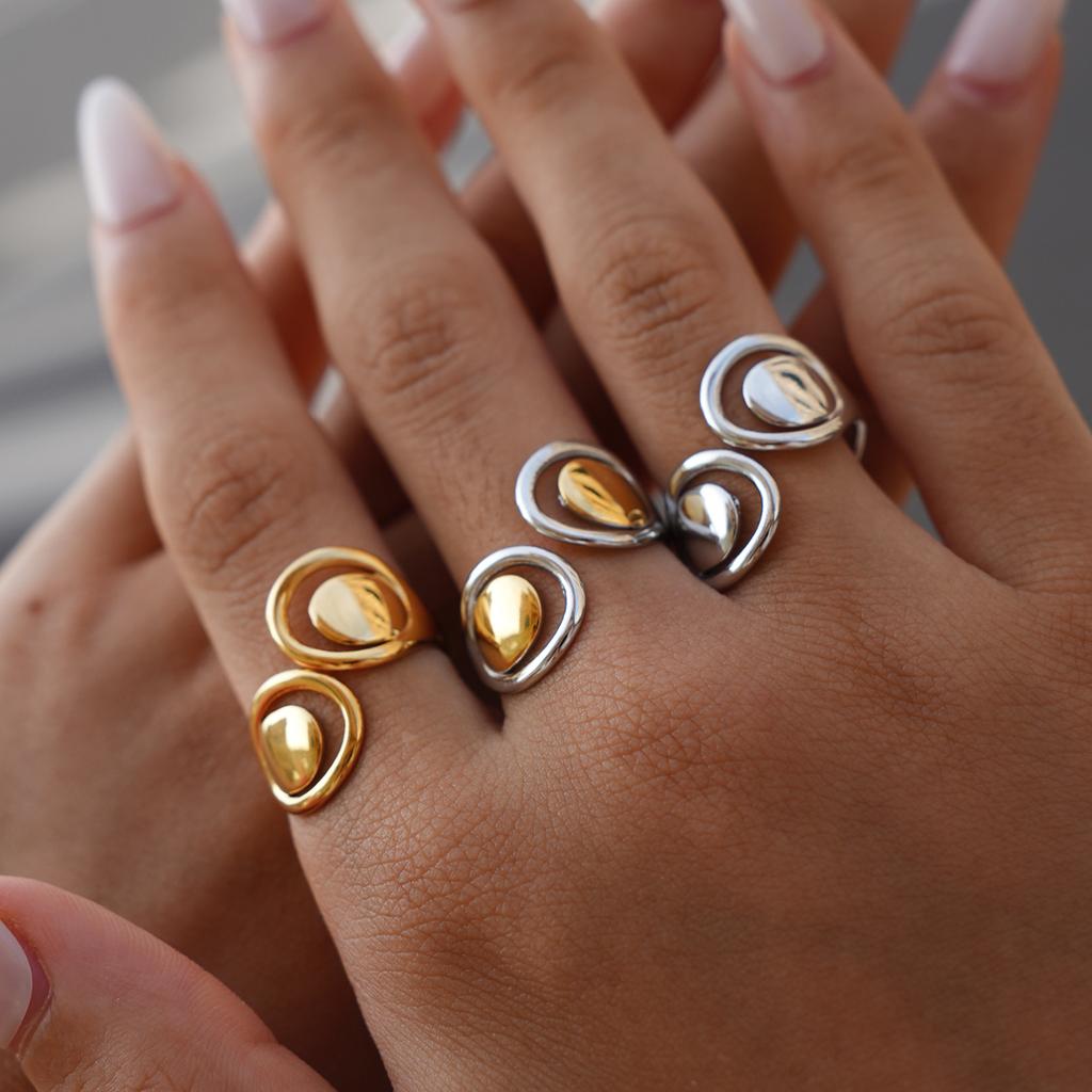 Simple Cutout Metal Smooth Stainless Steel Set Ring Women's Water Drop Opening Adjustable Thick Ring Party Jewelry Gift