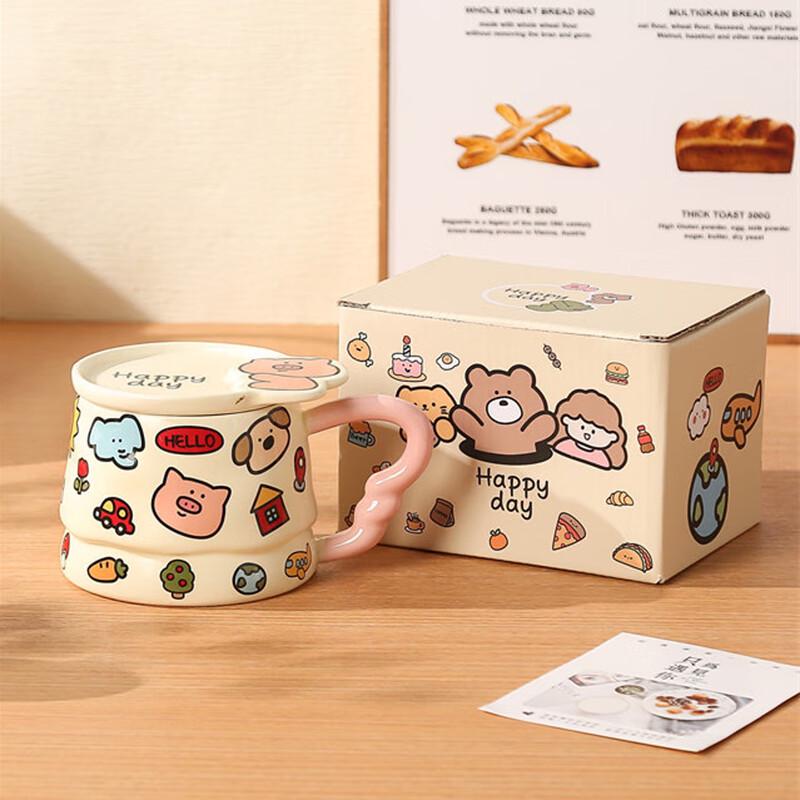 Mahutun Søt Tegneserie Dyr Keramisk Krus med Lokk