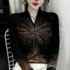 Plus Size Rhinestone Velvet High Neck Hoodie for Women - Autumn/Winter Loose Fit Cover Flaws Top