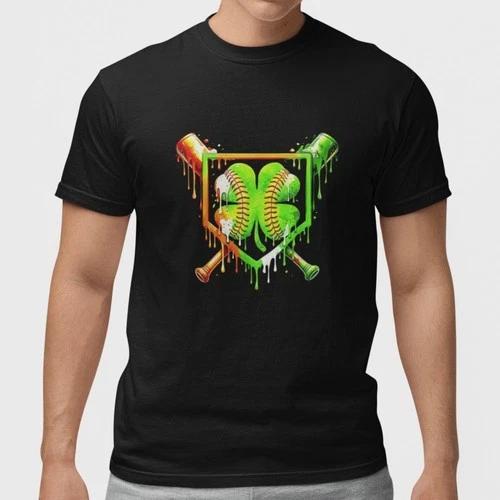 St Patricks Day Baseball Shirt Shamrock Clover Bat Lucky Tee S- Unisex Cotton