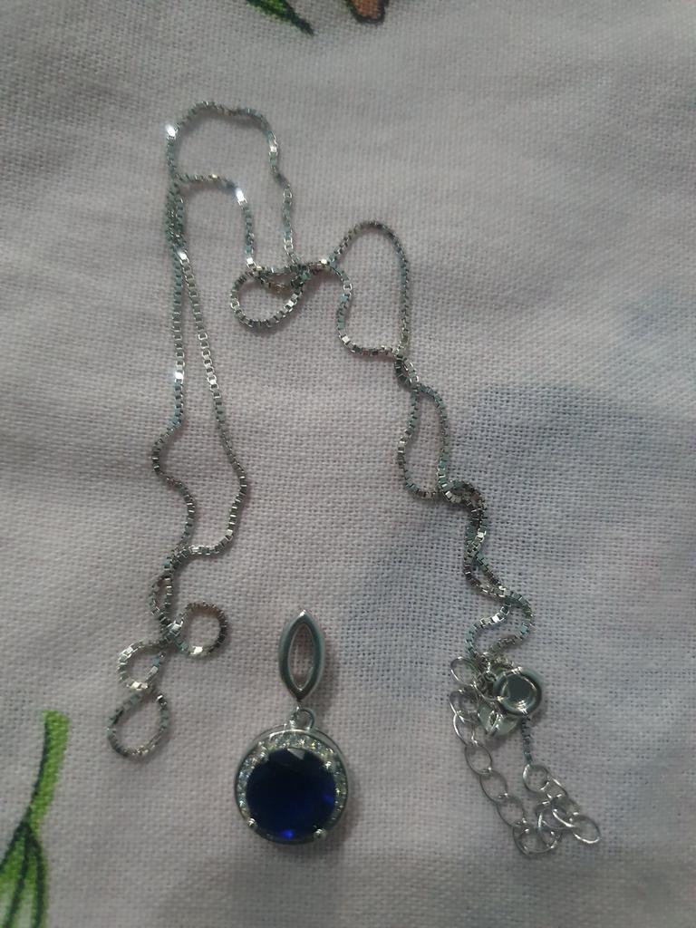 UMCHO Blue Sapphire Round Pendants Necklaces For Women Chain Link Charm Jewelry Gemstone Gift With Box