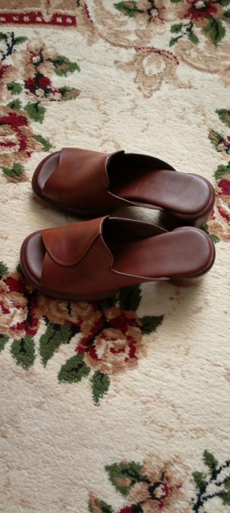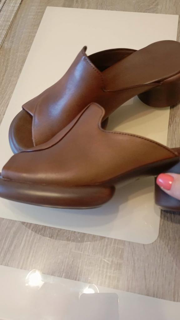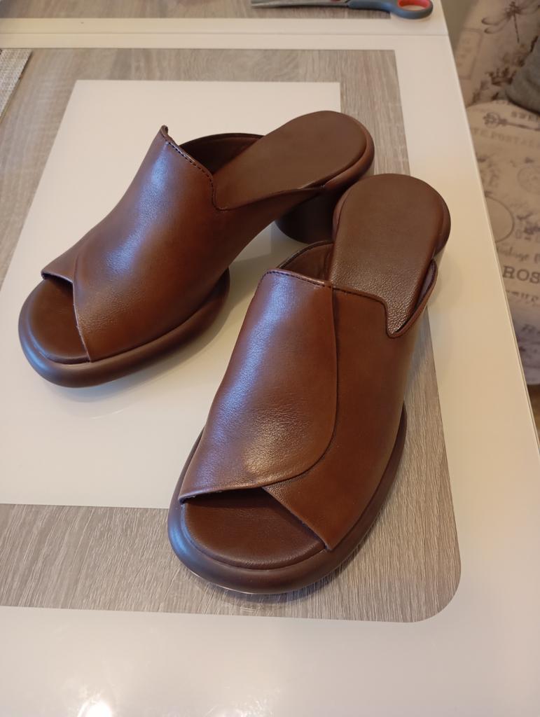 Johnature Peep Toe Slippers Solid Color Vintage Genuine Leather High Heels Comfortable Simple Women Shoes
