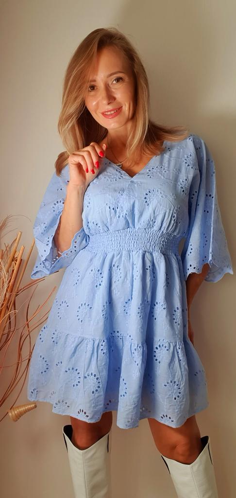 Vintage Hollow Borduurwerk Hoge Taille Jurk Fee A-lijn Korte Mouw Jurk Chique Zomer Strand Jurken Vrouwen Vakantie Zomerjurk