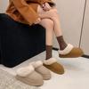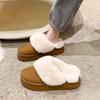 Winter Nieuwe Dames Verdikte Fleece-gevoerde Sneeuwschoen Pantoffels Verhoogde Hak Hoge Schacht Pluizige Pantoffels Rubberen Buitenzool
