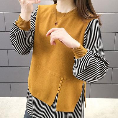 Dames Lente en Herfst Fake Tweedelig Ronde Hals Modetrend Streep Polka Dot Patch Los Veelzijdig Lange Mouw Trui