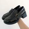 Fashion 2024 New Black Platform Women Loafers Fashion Round Toe Chunky Heels Retro Flat Shoes Female Slip on Casual Dress Women Pumps