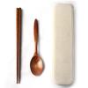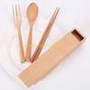 4Pcs/Set Wooden Chopsticks Spoon Tableware Rest with Box Portable Cutlery Set for School Office