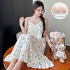 Zomer Koreaans geweven crêpe nachthemd met borstkussentjes - Zoet, dun, puur katoen voor dames