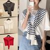 Korean Knit stripe Warm Shawl Female Outdoor Summer Air Conditioned Room Protect Cervical Spine Cloak Scarf Neck Guard Scarve