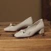 Soft leather can be stepped on~ bow light mouth single shoes new thick heel square head grandma shoes middle heel
