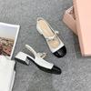 Mary Jane bag head sandals women's thick heel sandals pearl color matching empty single shoes middle heel women's summer women's shoes