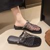 Baotou half slippers women's outer wear 2025 summer new niche mesh hollow slippers breathable low-heeled fishing net shoes