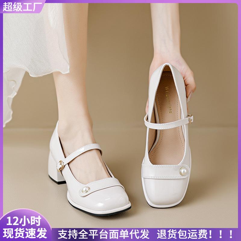 High-heeled Mary Jane shoes female spring and autumn word with fairy thick heel single shoes large size