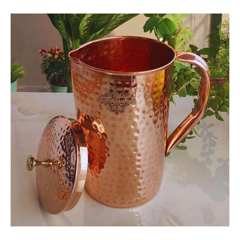 Pure Copper Water Jug with Lid, 2000 ML, Design, Traditional Ayurvedic Benefits, Durable & Stylish Serveware for Home, Kitchen, and Restaurants