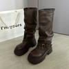 Fashion retro British style thick heel platform boots women's 2025 autumn and winter new simple and versatile height-increasing fashion boots
