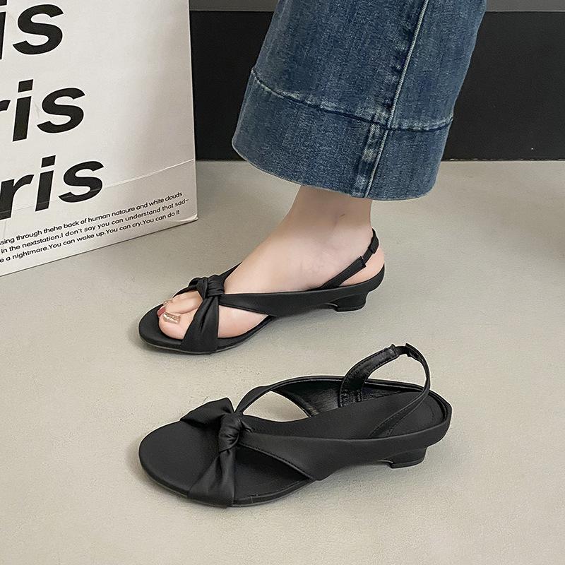 2025 new cross-band niche design simple back strap low heel versatile Roman sandals women's shoes