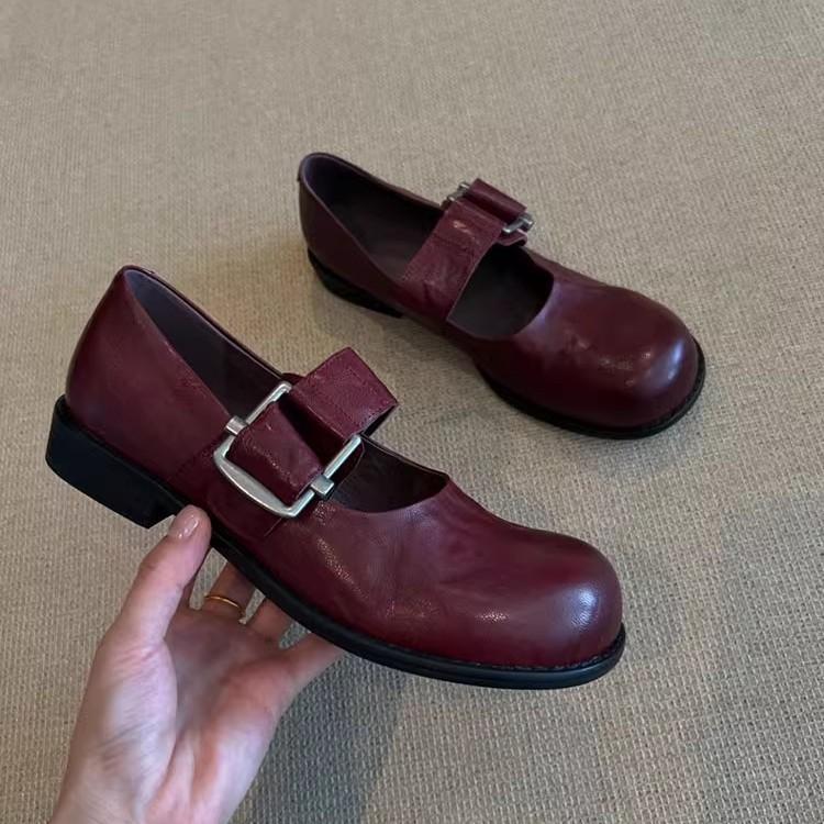 Sheepskin version~ British style Japanese round head Mary Jane shoes women's one-button loafers leather platform versatile single shoes