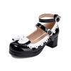Fashion Girls Sweet Lolita Ruffles Bowknot Lace Bridal Wedding Shoes Women High Heels Bordered Princess Cosplay Party Pink Size 34-48