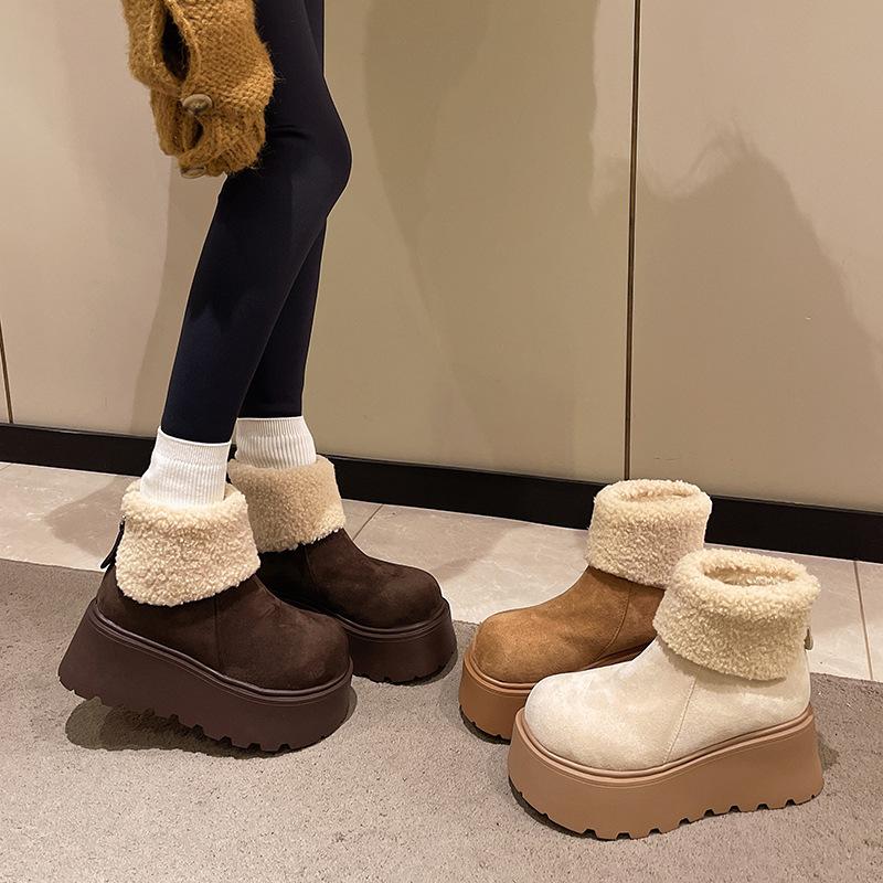 Sneeuwlaarzen met dikke zool en verhoging voor dames, nieuwe winter pluche warme pluizige korte laarzen, modieuze lelijke en schattige katoenen schoenen met grote kop