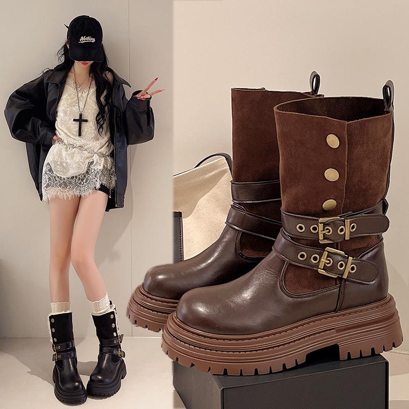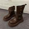 Korte bruine Martin boots voor dames 2025 nieuw herfst en winter retro Maillard dubbel draagbaar dikke zool hoogteverhogend veelzijdig korte laarzen