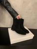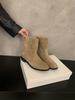 Koreaanse versie van retro suède ronde neus dikke hak kleine korte laarsjes dames 2025 lente, herfst en winter veelzijdige blote laarsjes woestenij wind