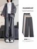Dames High-Waisted Fleece-Gevoerde Wollen Ruit Wijde Pijpen Broek
