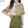 ZANZEA Women Turn Down Collar Summer Half Sleeve Patchwork Blouse