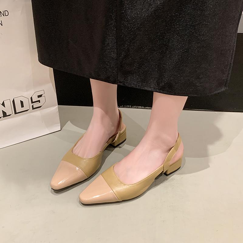Mode Lage Hak Baotou Sandalen Dames Frans Nude Kleur Puntig Kleine Geurige Stijl Dames Dikke Hakken Achter Lucht Stijl Enkele Schoenen