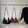 Women's Suede Equestrian Underarm Dumpling Handbag - Trendy Crescent Tote