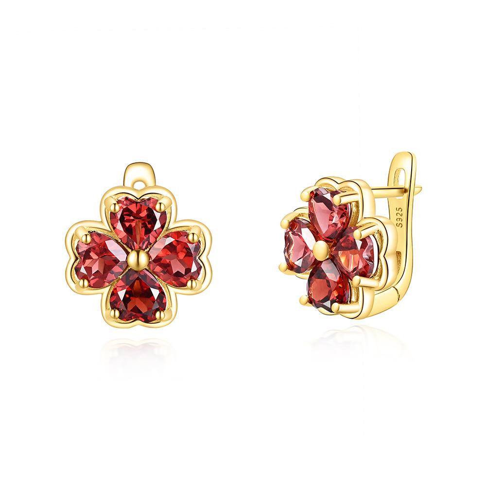 Elegant 925 sterling silver earrings natural garnet/sky blue Topaz Four leaf clover design fine jewelry for women birthday gifts