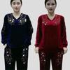 Spring Women's Velvet Blouse Rhinestone V-Neck Flocked Silk Blouse Soft Skin-Friendly Loose Plus-Size Blouse