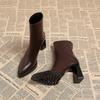 Mode 2025 populaire puntige neus dikke hak high-end kleine korte laarsjes voor dames herfst en winter hoge hakken Franse enkellaarsjes