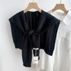 Korean Plain Basic Hollow Out Knitted Warm Shawl Winter Female Blouse Shoulders Fake Collar Cape Knotted Scarf Stripe Outerwear