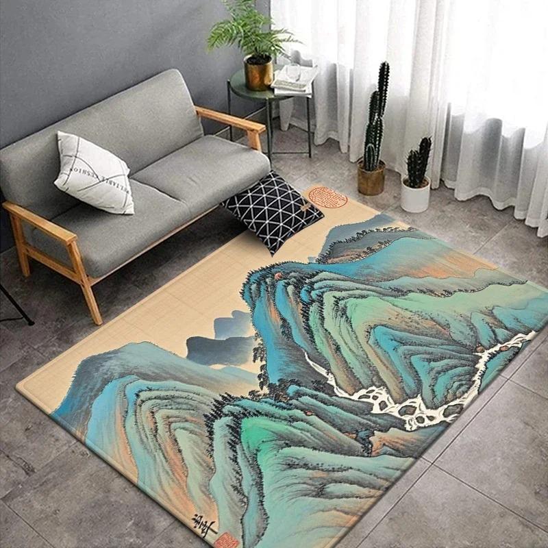 Chinese Landscape Art Area Rug Collection Exquisite Traditional Ink Painting Gold Foil Pattern Floor Mat For Living Room