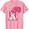 Cute Unicorn With Heart Balloons Valentine Graphic Tee Breathable Casual Short Sleeve T-Shirt for Girls Kids