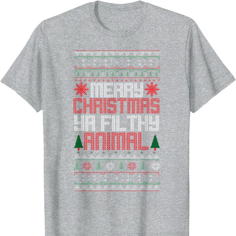 Christmas Merry Xmas Ya Filthy Animal Meme Lol Ugly Camiseta Negro Crew Neck Short Sleeve Cotton Top All Seasons Casual Fashion