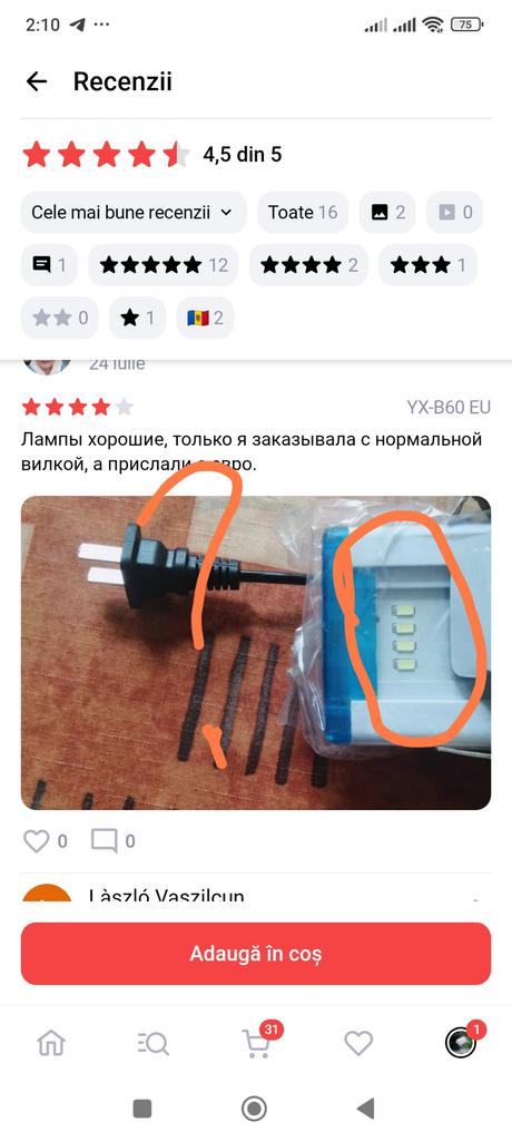 1 nu funcționează lampa. 2 nu are suporturile de lampa în complet. 3 nu corespunde formele lămpii. 4 cutia a ajuns deteriorată. 5 Joom nu răspunde la adresările mele în suportul clienților 6 nu mi-au rambursat banii pe produsul defect 7 Gândiți-vă de 10 ori înainte de a procura aceste produse... 8 Voi emigra la alți vânzători online fincă JOOM e o companie de escroci...