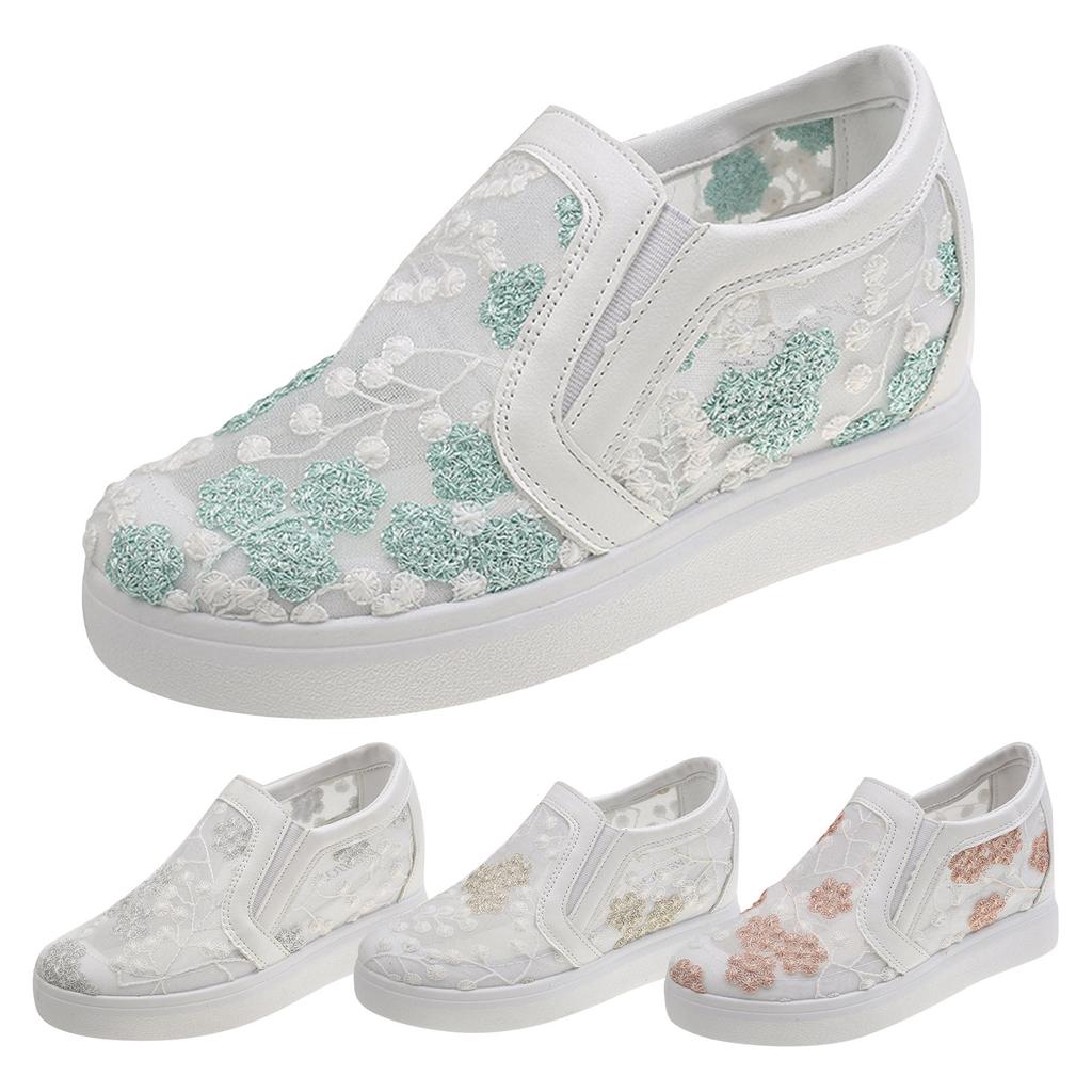 Inner Raised Small White Shoes With One Foot, Hollowed Out Embroidered Breathable Women's Shoes, Mesh Shoes, Casual Lazy Single Shoes